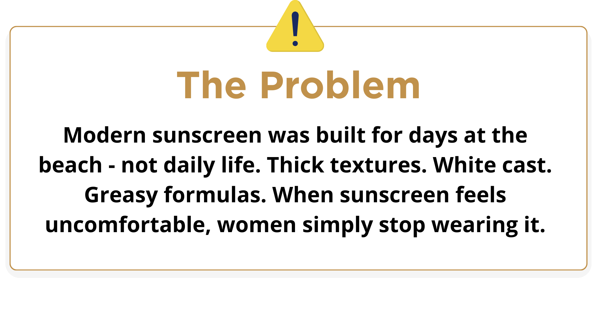Many SPFs are designed for beach protection, not daily skincare. So they feel thick, greasy and uncomfortable under makeup.