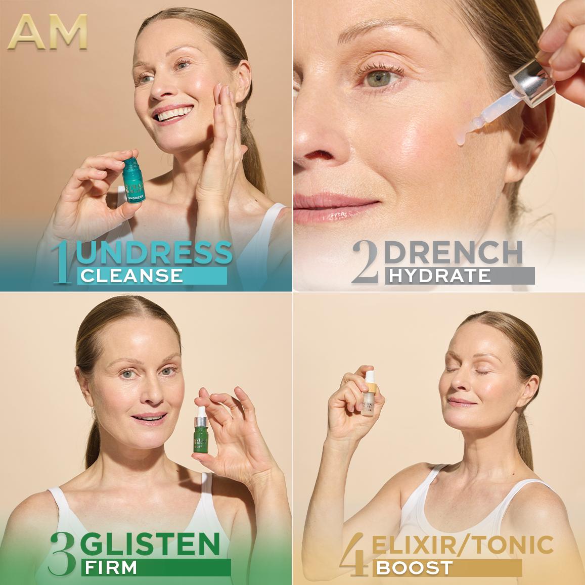 It delivers deep hydration, calm, and radiance through intelligent, barrier-safe formulas that work together morning and night.